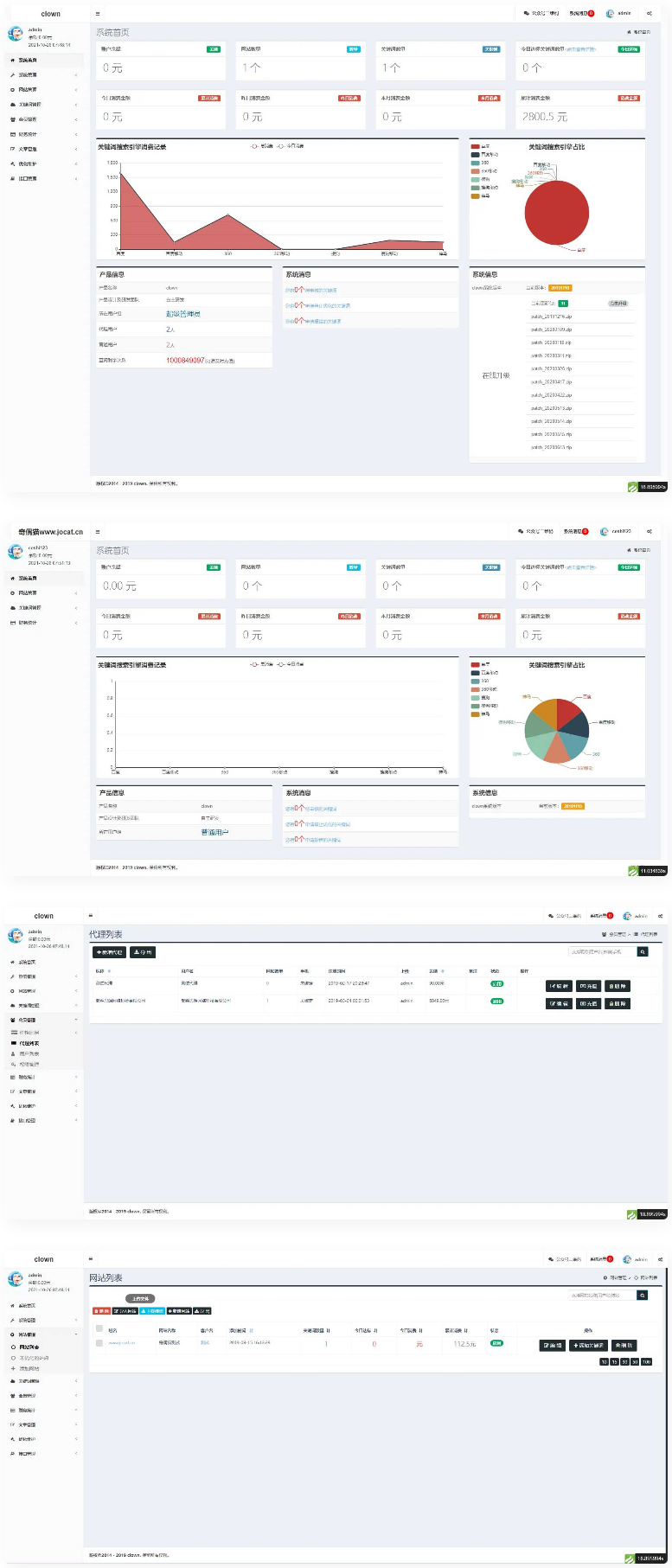 总站、代理、普通用户均可添加网站,在网站列表页可以看见网站的基本信息,