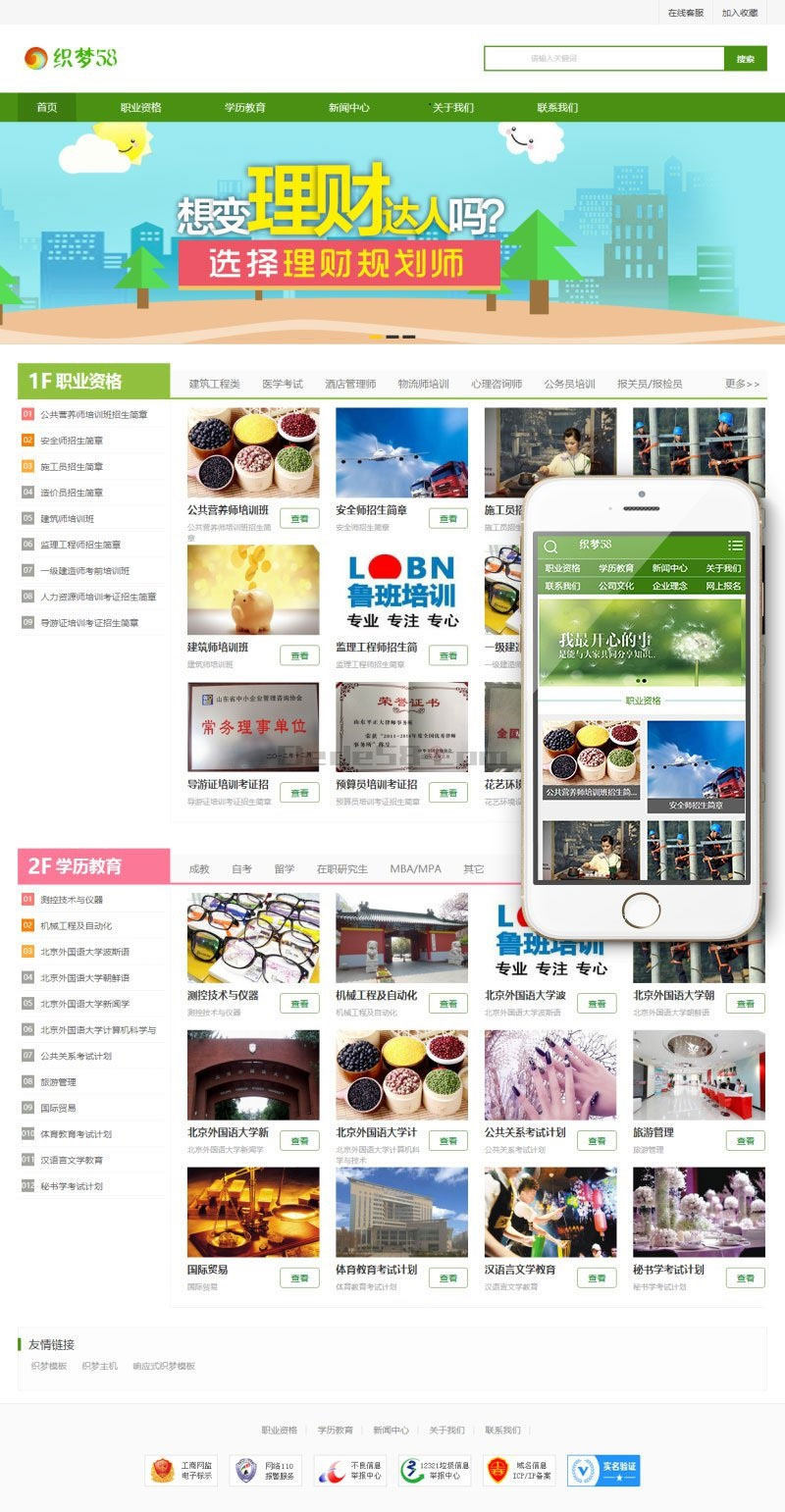 织梦内核开发的模板,该模板属于资格证书类、学校培训类企业都可使用,