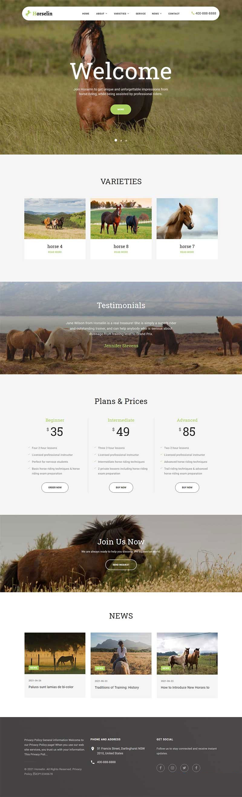 3、适用于畜牧业织梦模板、马匹饲养网站模板;