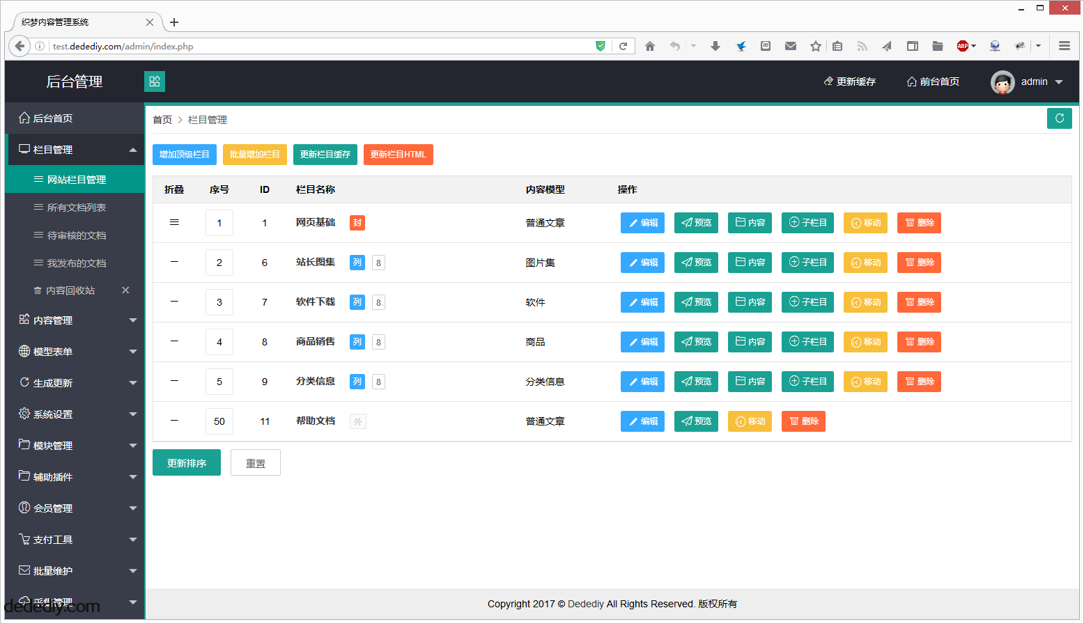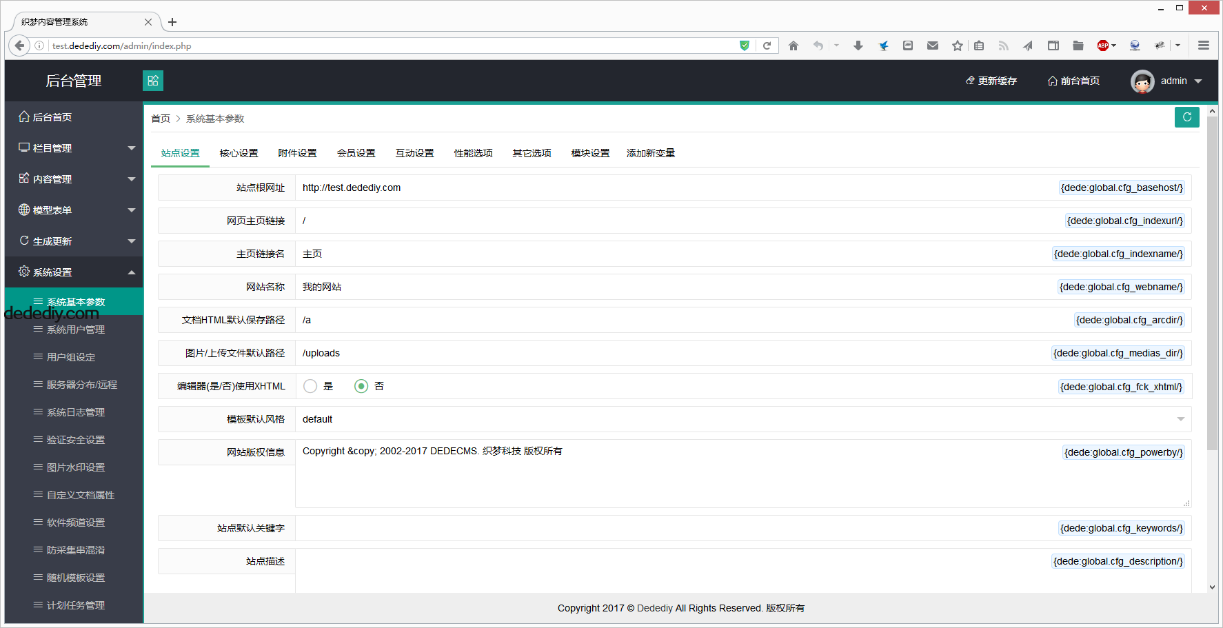 上传完文件后,清空浏览器临时文件,浏览器里打开 http://域名/dede预览效果