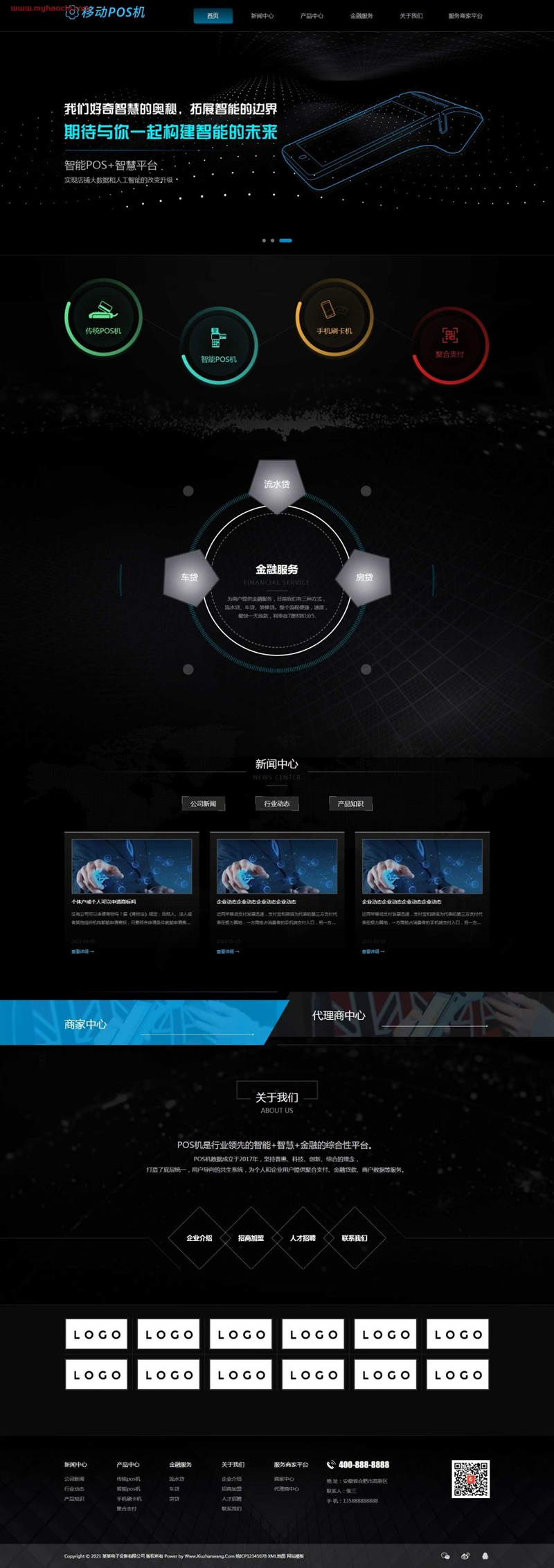 POS机移动刷卡机网站模板采用自适应结构,兼容性强, 后台提供各种文档发布功能,适用于数码企业建站和电子相关企业网站。