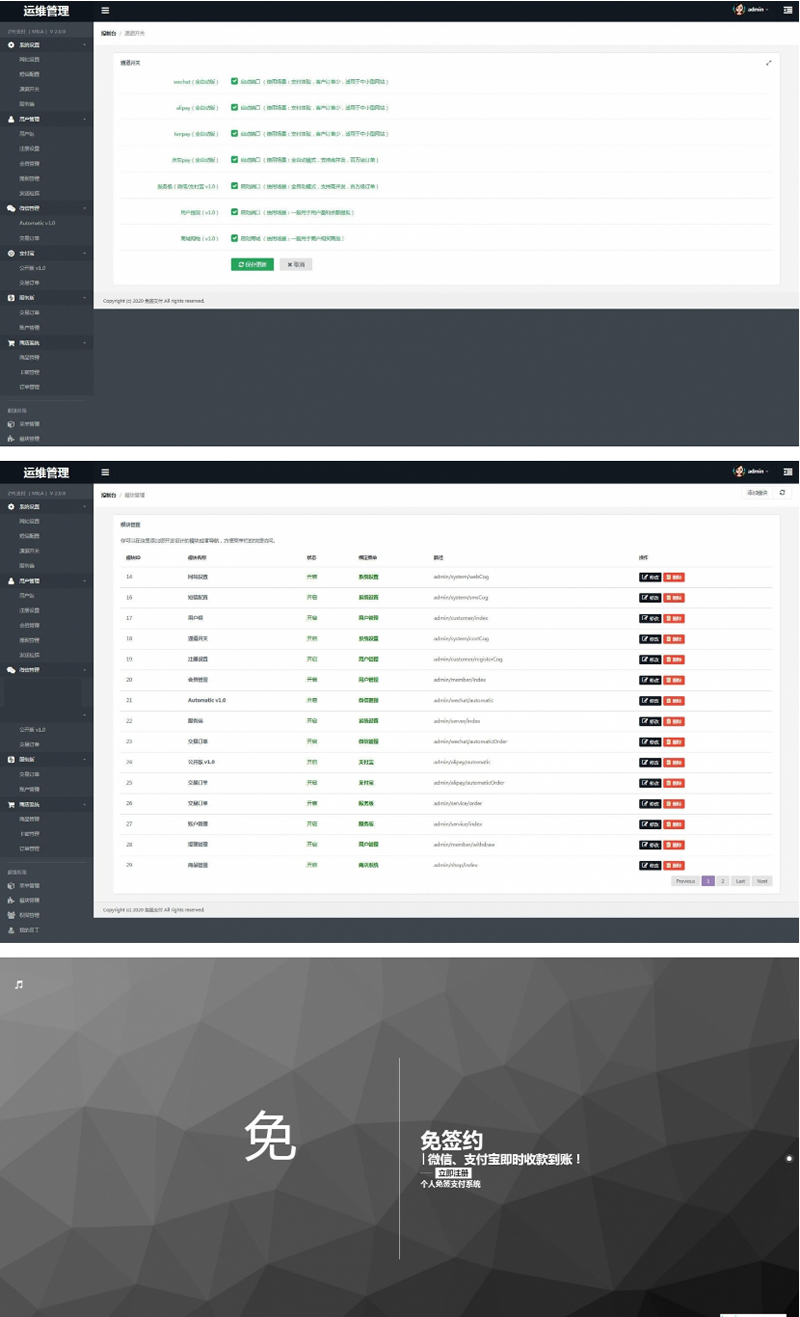个人免签源码+服务模块强大后台功能全面