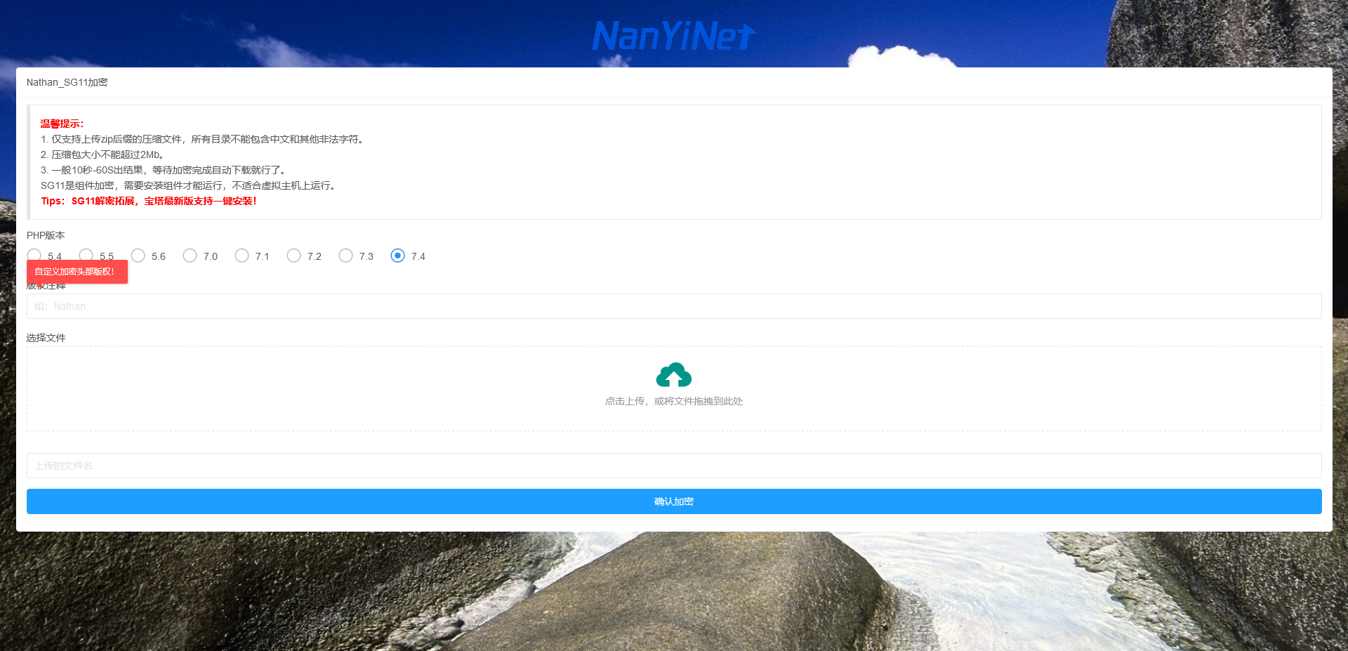 Nathan_Encode在线SG11加密平台系统 本系统为免费系统,无后门,切勿上当受骗,加密部分都是API接口,系统加密接口不一定啥时候不能用,想要稳定就去购买付费授权版。
