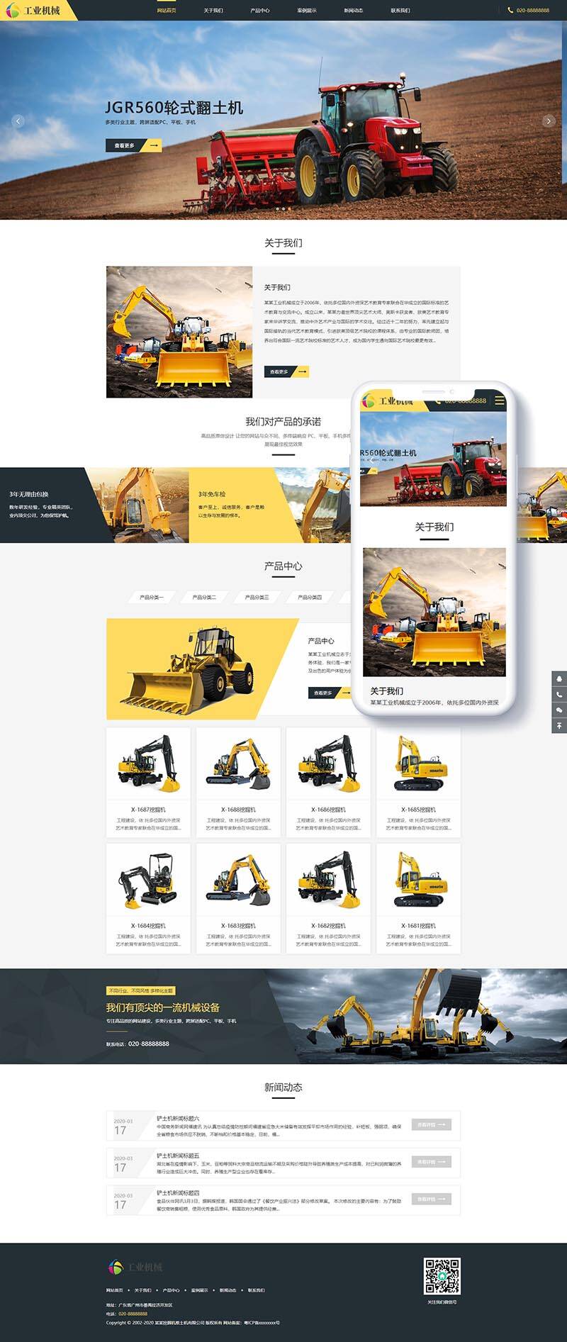 响应式推土机挖掘机机械类网站模板(自适应手机端)+PC+wap+利于SEO优化