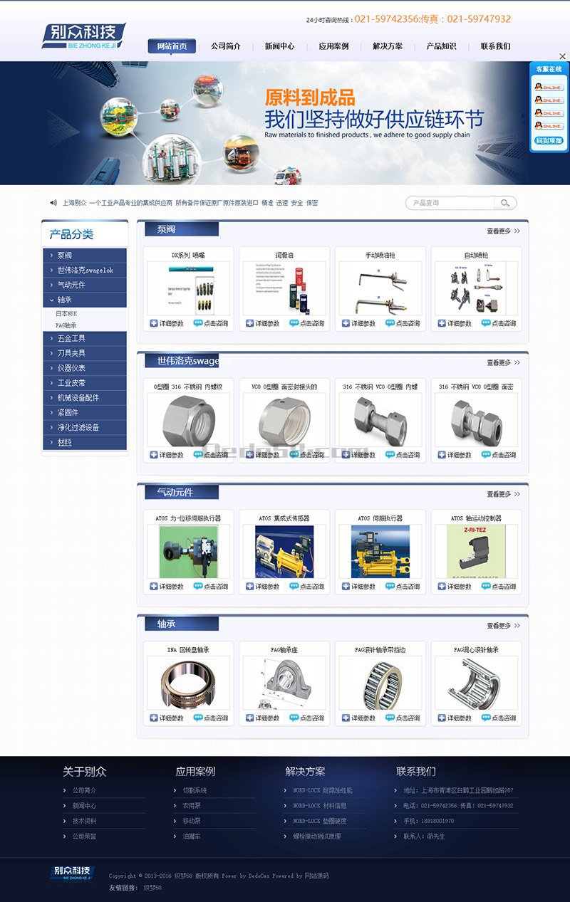 适用企业:泵阀|气动元件|轴承|仪器仪表|材料|机械设备配件等企业通用织梦模板