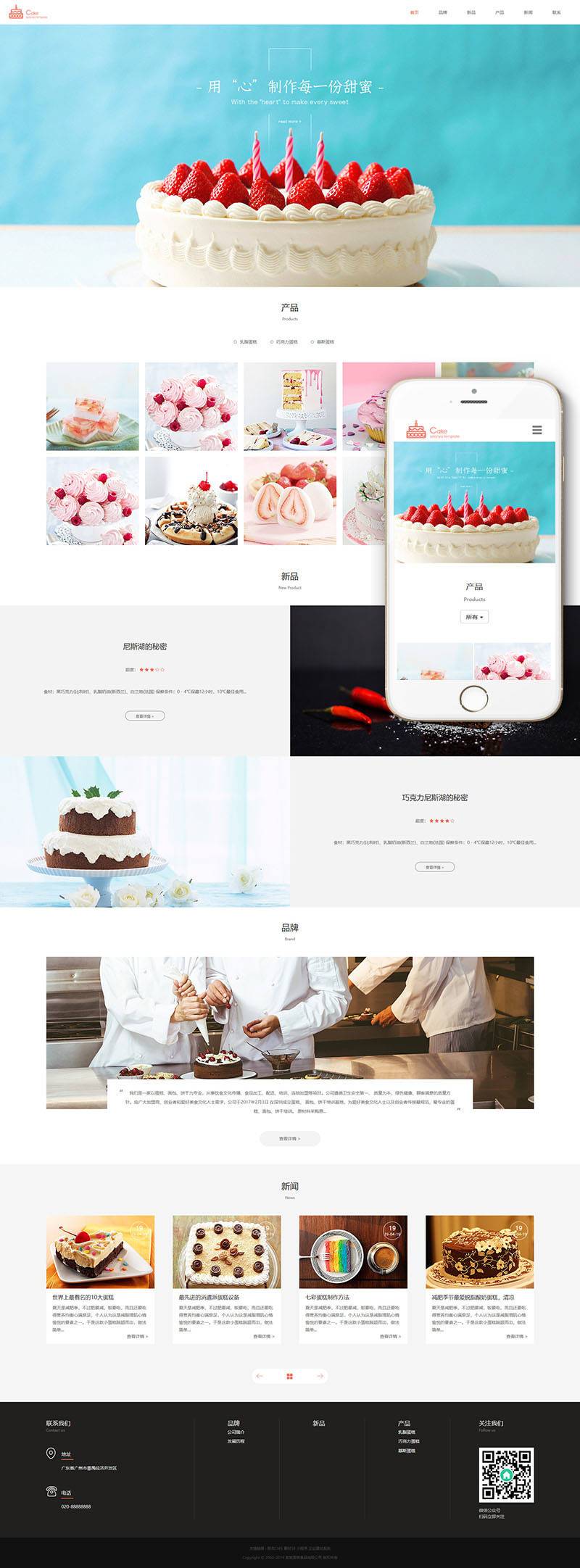 响应式食品蛋糕甜点类网站织梦模板(自适应手机端)+PC+wap+利于SEO优化