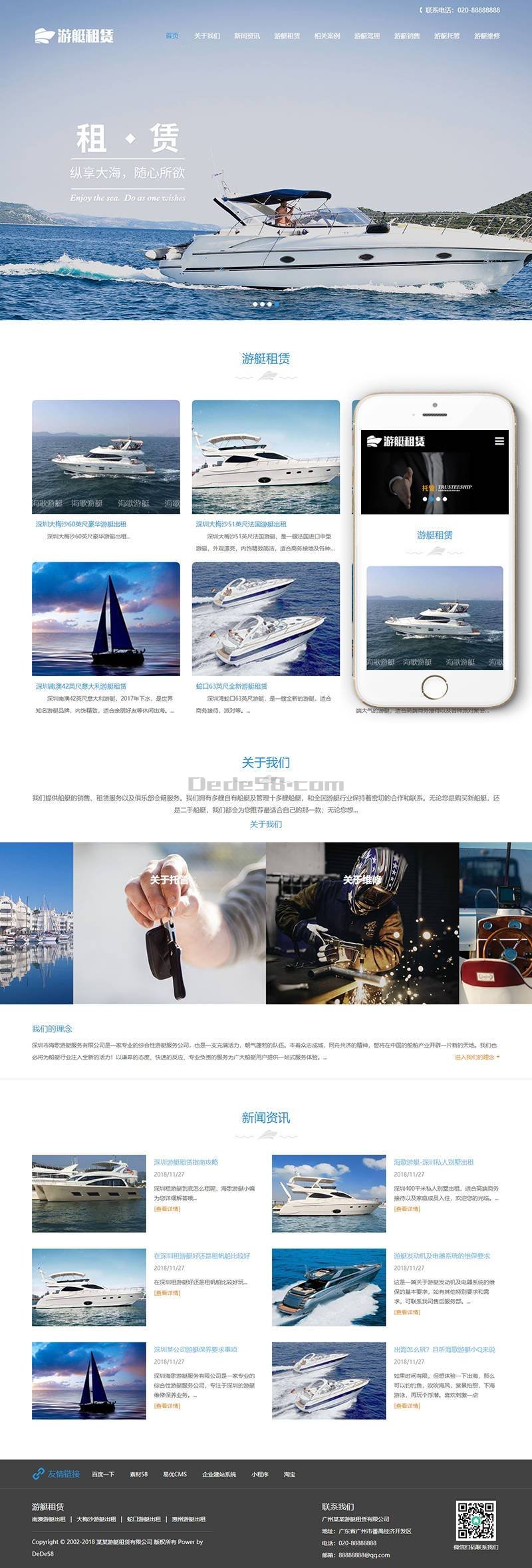 响应式游艇租赁类网站织梦模板(自适应手机端)+PC+wap+利于SEO优化