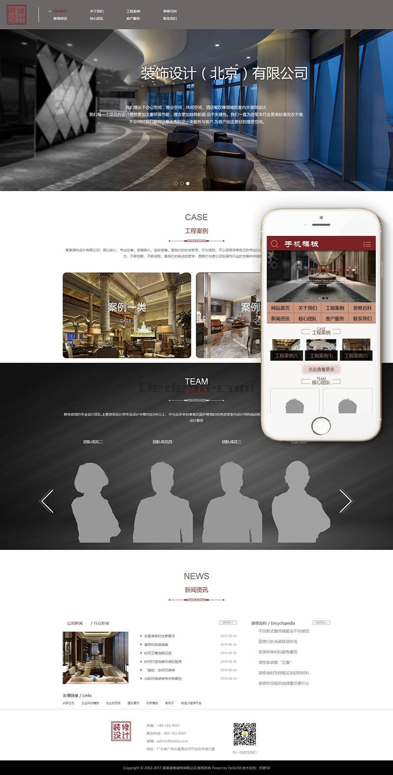 装潢装饰软装设计类织梦模板(带手机端)+PC+移动端+利于SEO优化