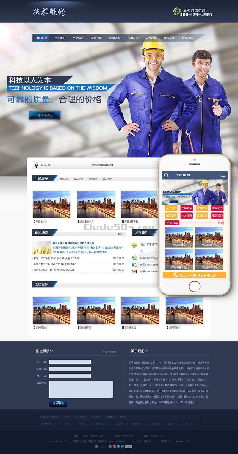织梦最新内核开发的模板,该模板属于企业通用类、各类家电维修、电子机械设备维修类企业都可使用,