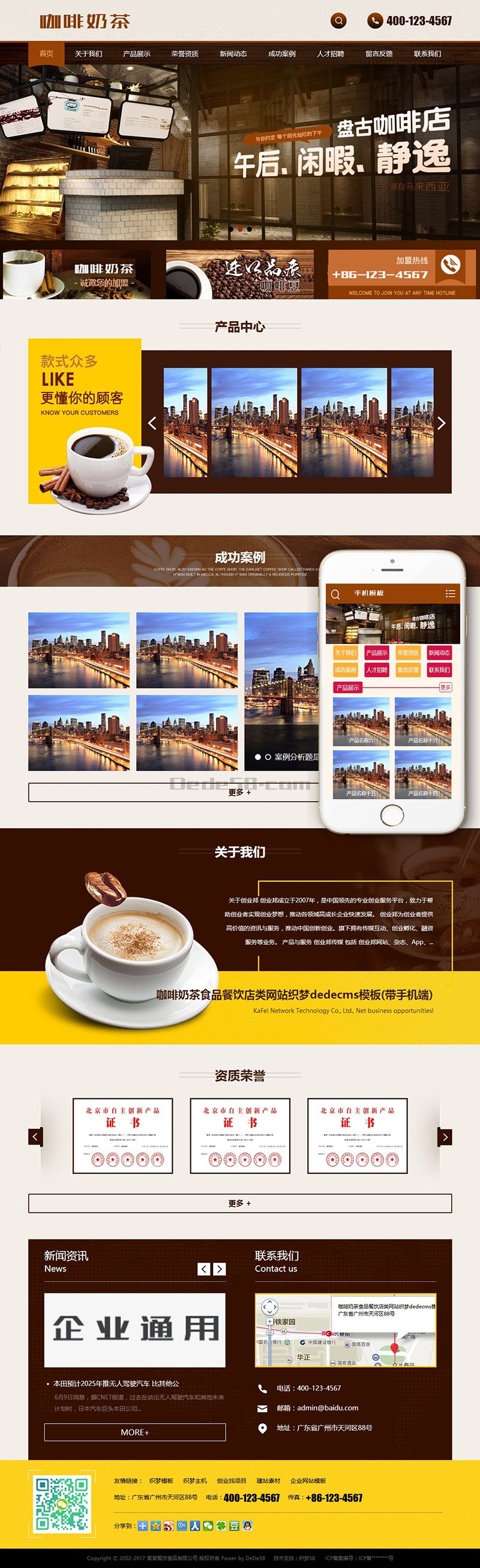 咖啡奶茶食品餐饮店类网站织梦dedecms模板(带手机端)+PC+移动端+利于SEO优化