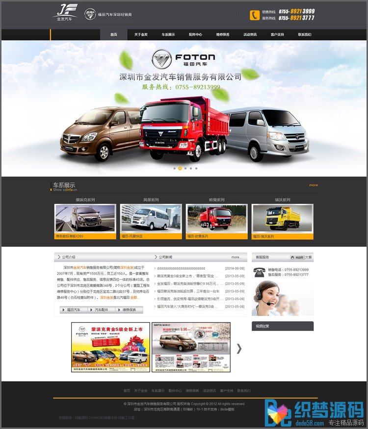 本商品是黑色大气汽车销售通用织梦企业模板整站源码,演示网站整站打包,带测试数据及图片,不是单一的企业网站模版,购买之后按照安装说明安装就可以了,整站更方便管理,适合设计、网络、汽车等公司或工作室建站使用。都说织梦CMS安全性差,只要及时打好程序补丁,去掉会员模块,还是非常安全的。如果安装不成功或者其他问题,很可能和您想虚拟主机或者服务器有关,购买虚拟主机的朋友在购买的时候问清商家是否支持织梦系统的。