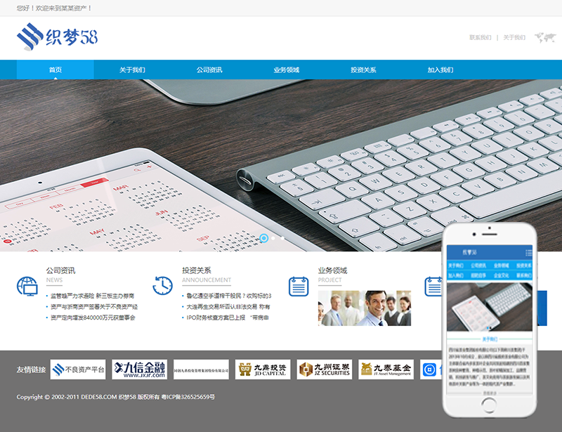 金融投资资产监管部门类网站织梦模板(dedecms带手机端)+wap+利于SEO优化