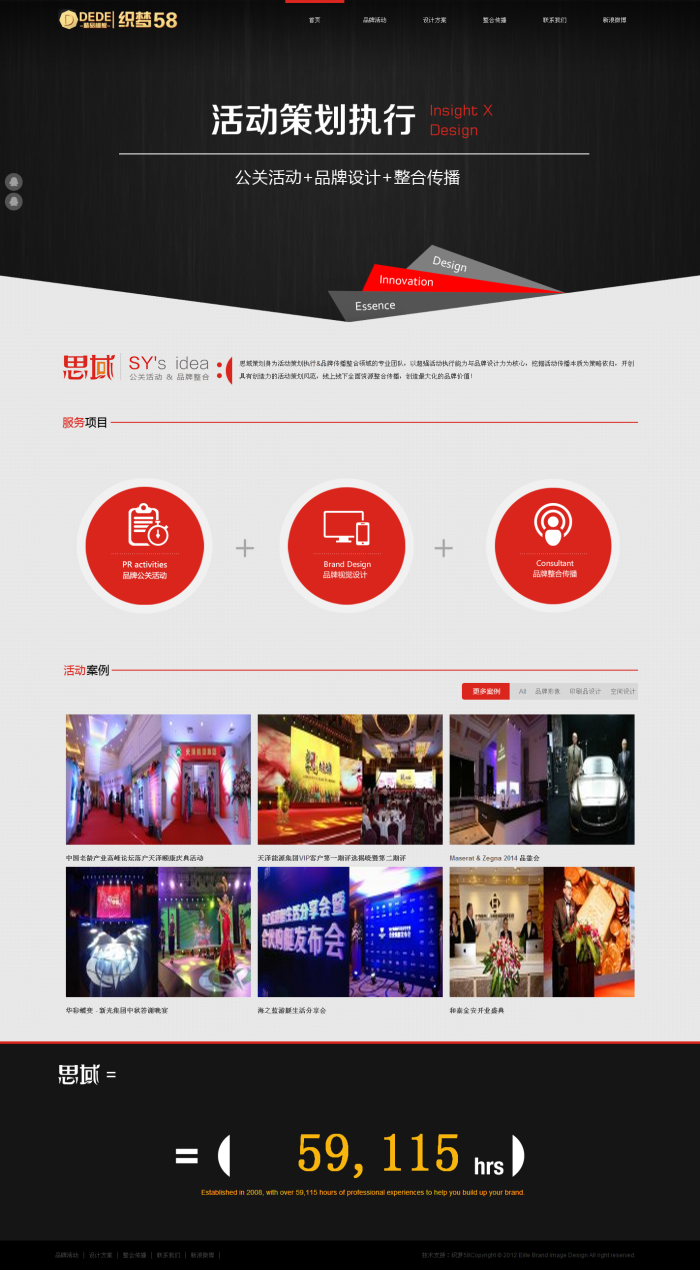 大气黑色活动策划设计类企业织梦源码,效果相当的炫酷,相当简洁大气高端,模板简单,全部已数据调用,只需后台修改栏目名称即可。