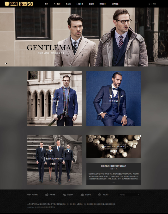 高端衫衫服装品牌类企业网站织梦模板,效果相当的炫酷,相当简洁大气高端,模板简单,全部已数据调用,只需后台修改栏目名称即可。