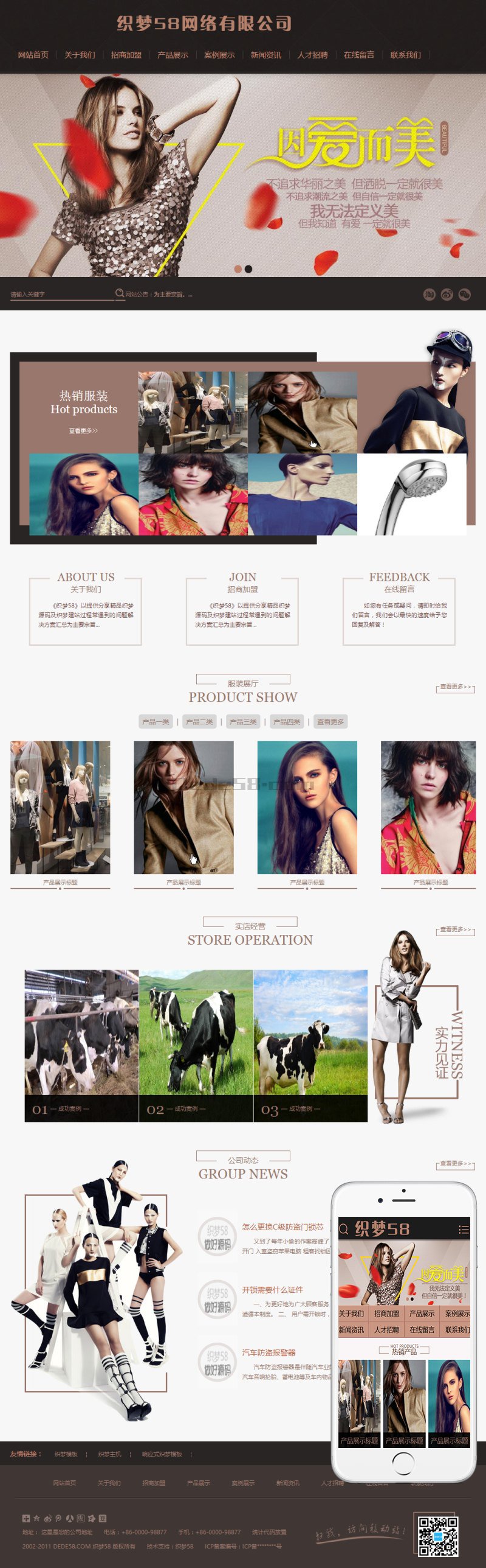 服装展示设计类网站织梦模板(带手机端)+PC+移动端+利于SEO优化