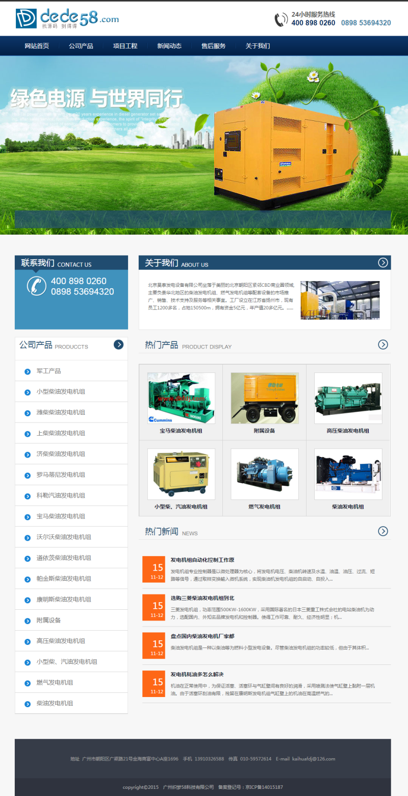 适合机械电源产品,机械网站类企业网站使用,简单便捷,