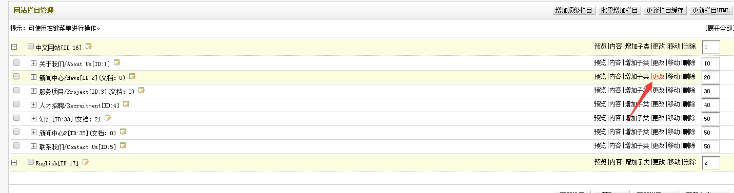 1,修复中文栏目新闻中心下的二级栏目没文档的问题