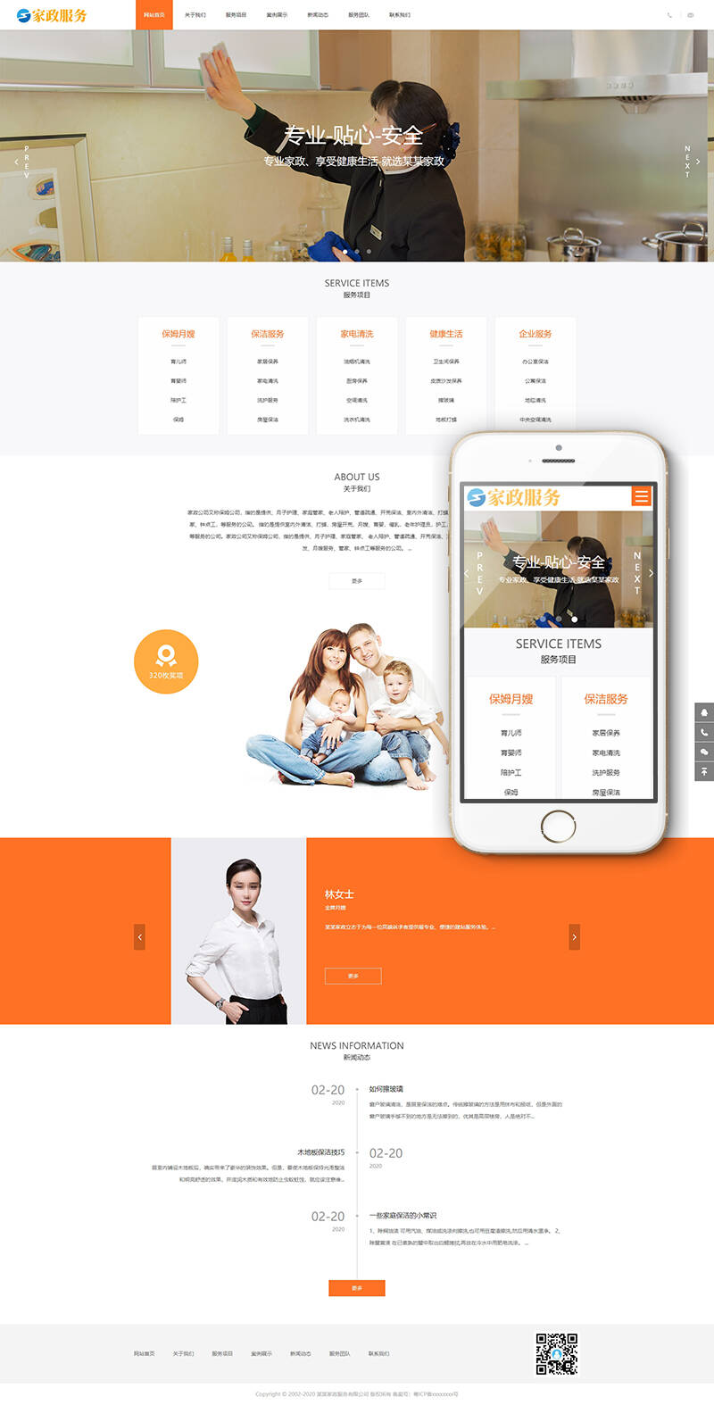 响应式家政保姆类网站织梦模板(自适应手机端)+PC+wap+利于SEO优化